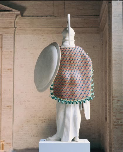 Some statues have been found with their bright colors still preserved, but most of them lost their paint through weathering.