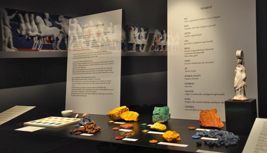 He has dramatized his scholarly findings by creating full-scale plaster or marble copies hand-painted in the same mineral and organic pigments used by the ancients: green from malachite, blue from azurite, yellow and ocher from arsenic compounds, red from cinnabar, black from burned bone and vine.