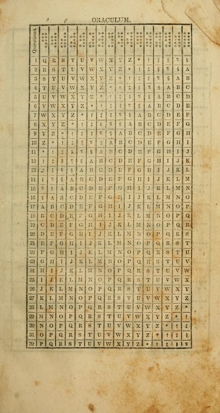 The Oraculum was published in America in the 1830s and the book remained popular, with numerous editions, throughout the century. There were several twentieth century editions but the book is out of print today. Public Domain Review has two editions, one from 1839 and one from 1923.