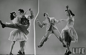 Kaye Popp & Stanley Catron demonstrating steps of The Lindy Hop. |