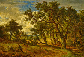 Achenbach_Andreas_A_Hunter_and_His_Dog_In_A_Wooded_Landscape |