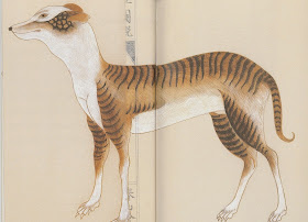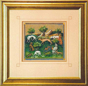 cherished lap dogs nestled on cushions. Each painting or sculpture show in its